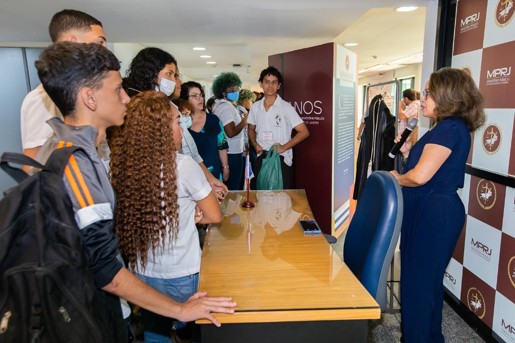 O Ministério Público do Estado do Rio de Janeiro (MPRJ), por meio do Centro de Memória Procurador de Justiça João Marcello de Araújo Júnior (CDM/MPRJ), recebeu, nesta terça-feira (22/11), alunos e professores do Instituto de Educação Professor Carlos Pasquale, de Nilópolis, para uma visita guiada pelo Corredor Cultural Promotor de Justiça Stênio Lutgardes Neves, localizado no prédio das Procuradorias da instituição. O passeio é parte do projeto Calçada da Cidadania, uma iniciativa conjunta do MPRJ com a OAB-RJ, o IAB e a Defensoria Pública, que tem como objetivo apresentar o sistema judicial para estudantes do ensino médio e fundamental das redes públicas e privadas.