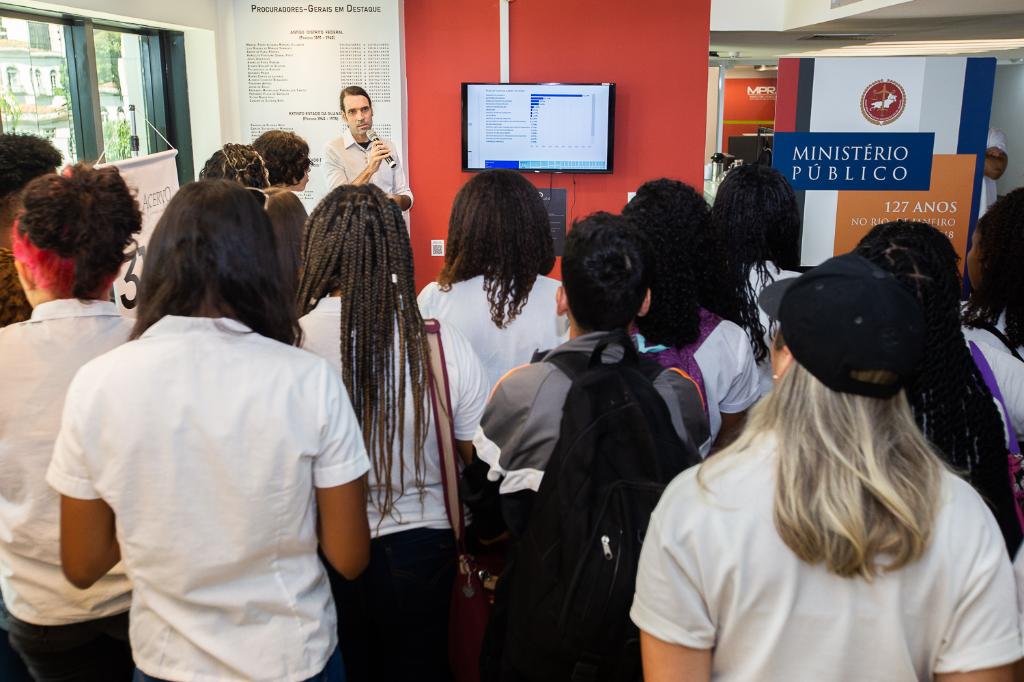 Depois da visita ao MPRJ, os estudantes foram conhecer a Defensoria Pública, o IAB e a OAB-RJ, em um circuito que inclui conversas com profissionais especializados, visita a exposições, exibição de filmes e atividades lúdicas.