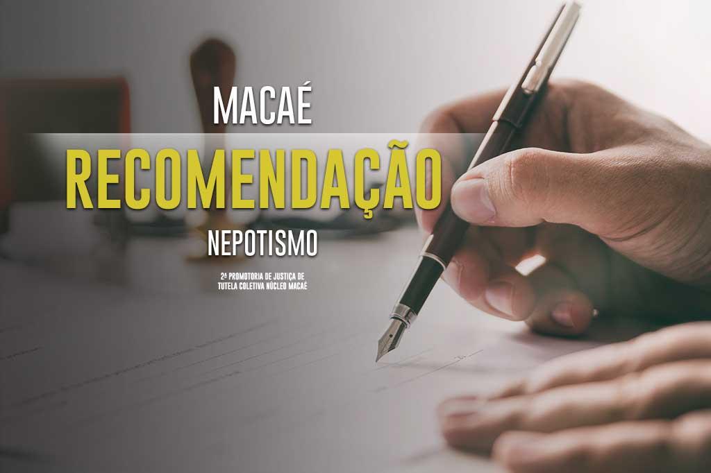 A Recomendação destaca que o Município de Macaé celebrou, em 2015, um Termo de Ajustamento de Conduta com o Ministério Público do Estado do Rio de Janeiro (MPRJ), no qual se comprometeu a não efetuar novas nomeações para quaisquer cargos comissionados ou funções de confiança e gratificadas de cônjuges, companheiros e parentes em linha reta colateral ou por afinidade até o terceiro grau de vereadores e do procurador-geral da Câmara de Macaé.