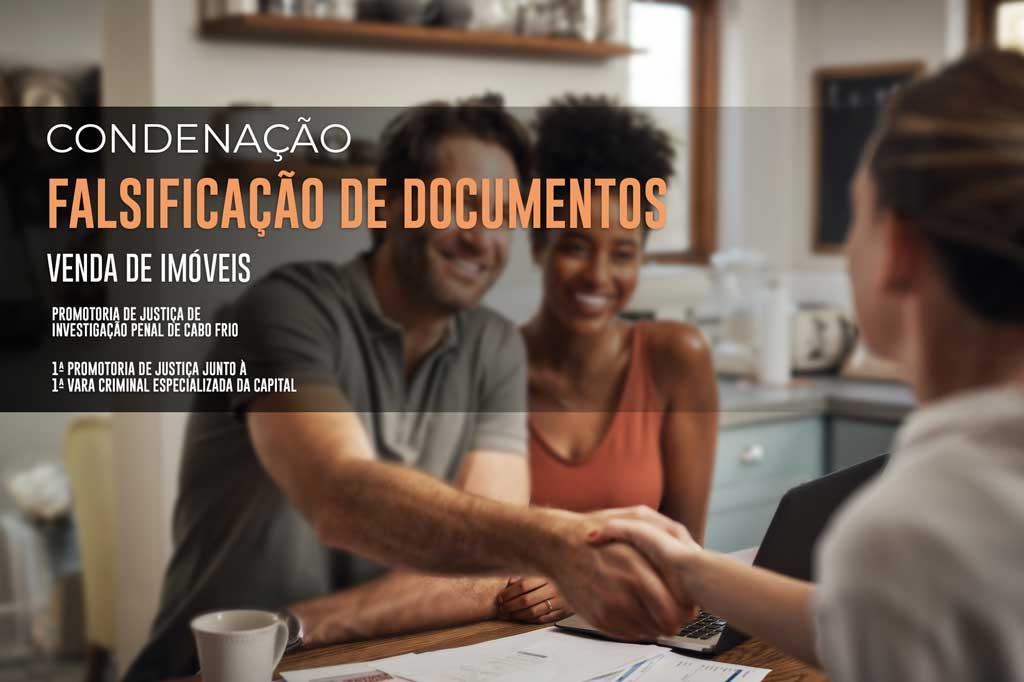 O Ministério Público do Estado do Rio de Janeiro (MPRJ) obteve, por meio da 1ª Promotoria de Justiça junto à 1ª Vara Criminal Especializada da Capital, condenação de oito integrantes de uma quadrilha que falsificava documentos para a venda de imóveis em Cabo Frio, Magé e no município do Rio de Janeiro. De acordo com a denúncia da Promotoria de Justiça de Investigação Penal de Cabo Frio, que conduziu as investigações, a quadrilha contava com uma funcionária pública, lotada no 11º Ofício de Notas, (Rua do Acre, nº 28), para viabilizar o sucesso da empreitada criminosa.