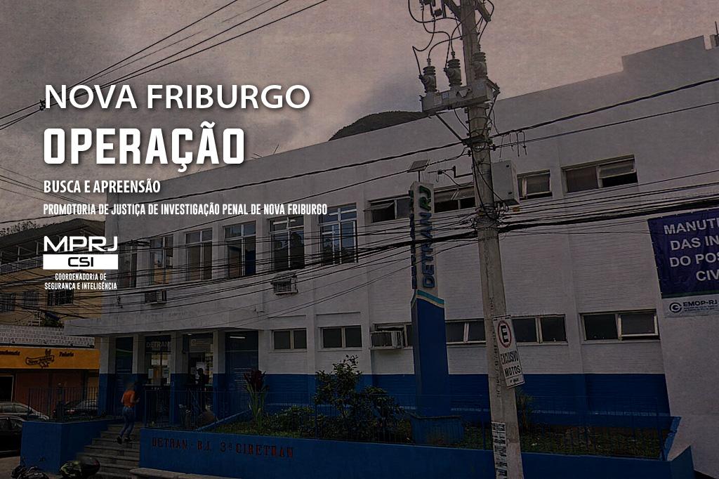 O Ministério Público do Estado do Rio de Janeiro (MPRJ), por meio da Promotoria de Justiça de Investigação Penal de Nova Friburgo, realizou, no último dia 30 de março, em parceria com a 151ª DP e com o apoio da Coordenadoria de Segurança e Inteligência (CSI/MPRJ), a primeira fase da Operação Vista Grossa, que cumpriu sete mandados de busca e apreensão em uma investigação sobre a prática dos crimes de corrupção passiva, associação criminosa e lavagem de dinheiro no Detran de Nova Friburgo.