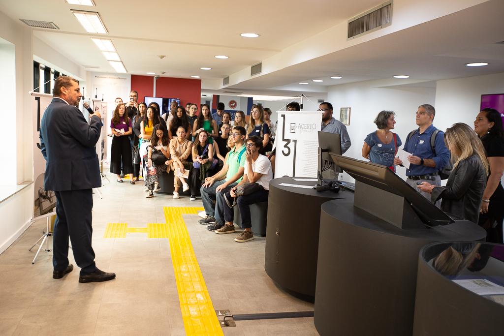 A servidora Nataraj Trinta, historiadora do CDM/MPRJ, foi responsável por guiar os estudantes pelo espaço, formado por um acervo histórico digital, totens sobre membros ilustres do MPRJ, estante com livros históricos sobre a Instituição, painéis informativos, entre outros itens. O procurador de Justiça Augusto Vianna, Ouvidor do MPRJ, palestrou aos alunos sobre a evolução da atuação institucional e destacou a importância da proximidade da sociedade com a história do MPRJ.