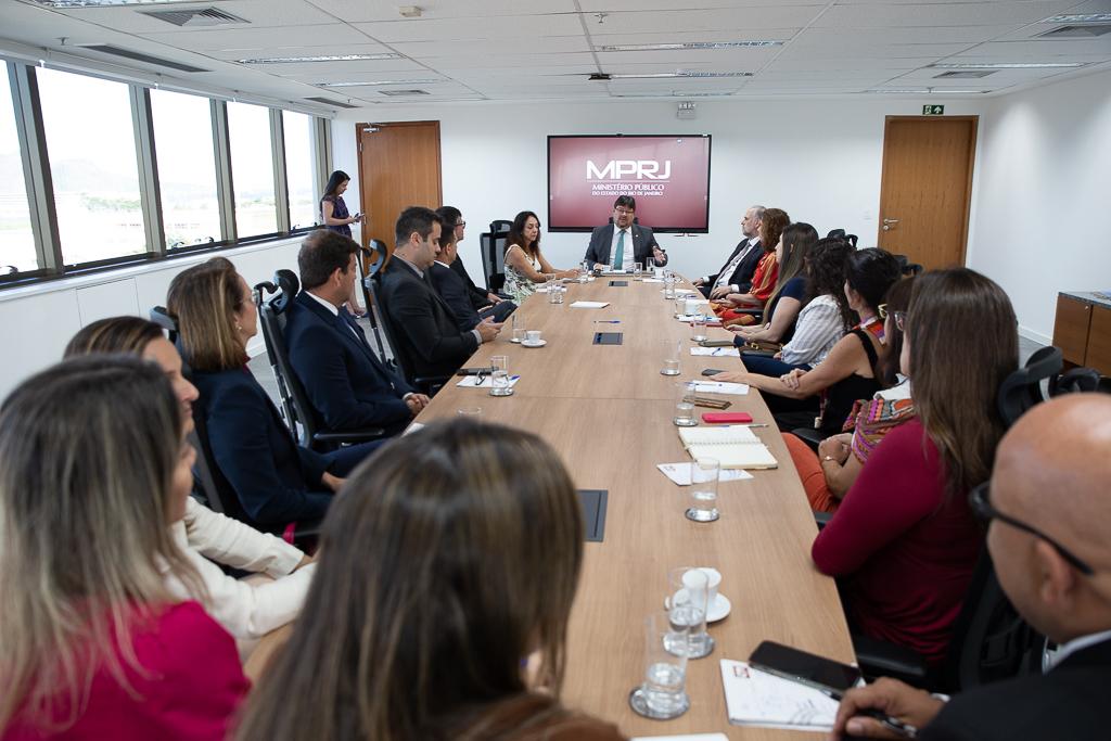 Também participaram da reunião o procurador de Justiça José Roberto Paredes, coordenador do CAO das Procuradorias de Justiça; o chefe de gabinete do MPRJ, David Francisco de Faria; os assessores da Secretaria-Geral de Planejamento Institucional, Bernardo Vieiralves Martins e Sidney Rosa; a procuradora de Justiça Carla Araújo, Coordenadora do Centro de Apoio Operacional das Promotorias de Justiça de Combate à Violência Doméstica e Familiar e respondendo pelo expediente do CAO Execução Penal; o promotor de Justiça Leandro Navega, representando o CAO Criminal; a subcoordenadora do CAO Investigação Penal, Adriana Lucas Pereira; a coordenadora do CAO Cível e Tutela Coletiva da Pessoa com Deficiência, Carolina Senra; a coordenadora do CAO Infância e Juventude matéria infracional, Carolina Enne; a coordenadora do CAO Infância e Juventude matéria não infracional, Aline Carvalho dos Santos; a subcoordenadora do CAO Infância e Juventude, Raquel Madruga do Nascimento Brito; o coordenador do CAO Cidadania, André Navega; a coordenadora do CAO Eleitoral, Miriam Tayah Chor; a coordenadora do CAO Consumidor, Christiane Cavassa; a coordenadora do CAO Meio Ambiente e Ordem Urbanística, Patrícia Silveira da Rosa; a coordenadora do CAO Saúde, Denise Vidal e a coordenadora do CAO Idoso, Cristiane Branquinho.