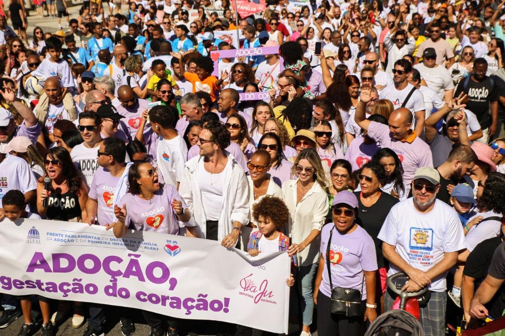 O evento é promovido anualmente pela Frente Parlamentar em Defesa da Família, da Adoção e da Primeira Infância, que tem como presidente a deputada estadual Jucelia Oliveira Freitas, a Tia Ju; e conta com o apoio de vários parceiros. Além do MPRJ, participaram da caminhada o Tribunal de Justiça do Rio de Janeiro (TJRJ), a Comissão de Direitos da Criança e do Adolescente (CDCA) da OAB/RJ, a associação civil Quintal de Ana, o Instituto Brasileiro de Direito de Família (IBDFAM), entre outros. A atriz Aline Wirley e o marido, o também ator Igor Rickli, que já são pais de Antônio, de oito anos, estão na fila para adotar uma criança e participaram do evento, assim como outras famílias. Os professores Osvaldo Maffei Junior e Carlos Henrique Braga adotaram os irmãos Aylla, de dois anos, e Victor Hugo, de cinco.