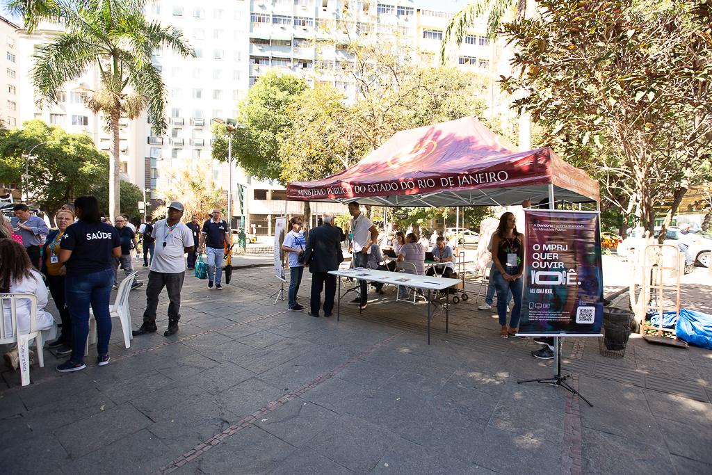 A Ouvidoria do Ministério Público do Estado do Rio de Janeiro (Ouvidoria/MPRJ) montou uma base na saída da estação de metrô Cardeal Arcoverde, em Copacabana, nesta quinta-feira (25/05), para prestar atendimento à população que passa por ali e deseja registrar denúncias, fazer pedidos de informações ou queixas diversas. A iniciativa integra o projeto 'Ouvidoria Itinerante', que reúne em um mesmo lugar diferentes órgãos e serviços, com objetivo de fortalecer o diálogo com a sociedade, apresentar as funções dos órgãos públicos e divulgar as ouvidorias como instrumento de participação social.
