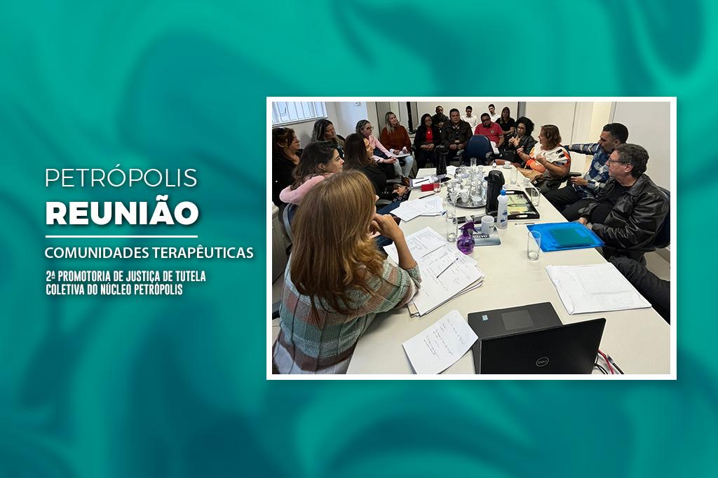 A 2ª Promotoria de Justiça de Tutela Coletiva do Núcleo Petrópolis realizou nesta segunda-feira (26/06), Dia Internacional de Combate às Drogas, uma reunião com representantes dos Departamentos de Saúde Mental e de Atenção Básica da Prefeitura, e das três comunidades terapêuticas do município, para discutir o atendimento das pessoas acolhidas nos locais. A comunidade terapêutica realiza o acolhimento de pessoas com transtornos decorrentes do uso, abuso ou dependência de drogas, em regime residencial transitório.