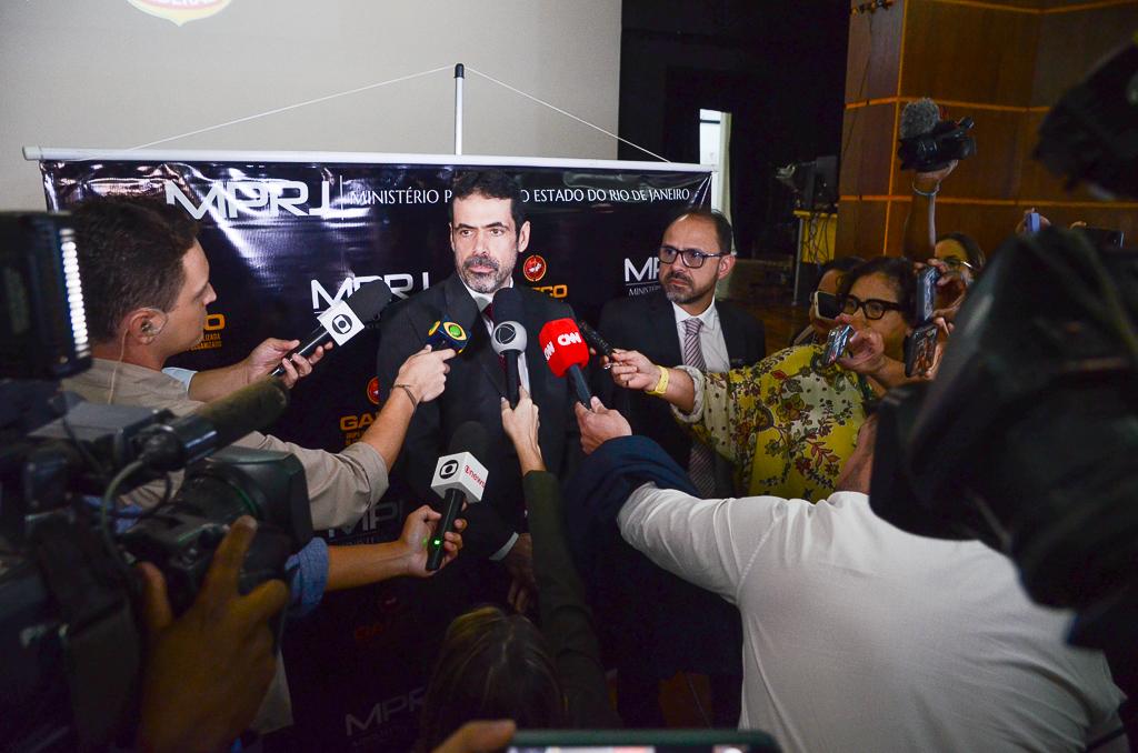 Em entrevista coletiva realizada na sede da PF, na Praça Mauá, o promotor de Justiça Fabio Corrêa, coordenador do Gaeco/MPRJ; os promotores Eduardo Morais Martins e Paulo Rabha de Mattos, integrantes da Força-Tarefa, o superintendente da Polícia Federal no Rio de Janeiro, Leandro Almada, e os delegados da PF Jaime Cândido e Guilhermo Catramby falaram sobre as investigações.