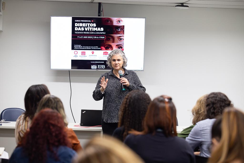 Antes de dar início à dinâmica do curso, a coordenadora de Promoção dos Direitos das Vítimas, procuradora de Justiça Patricia Mothé Glioche Béze, falou sobre a perspectiva do encontro: contribuir para a construção do debate sobre direitos das vítimas na rede de serviços socioassistenciais; promover a integração dos serviços que atuam sobre a temática dos direitos das vítimas de criminalidade no Rio de Janeiro; e construir um mapeamento da rede de atendimentos das vítimas no território. “Ninguém aqui tem a pretensão de dar conta de todo o problema. O que propomos é uma troca, em busca de avanços”, ressaltou.