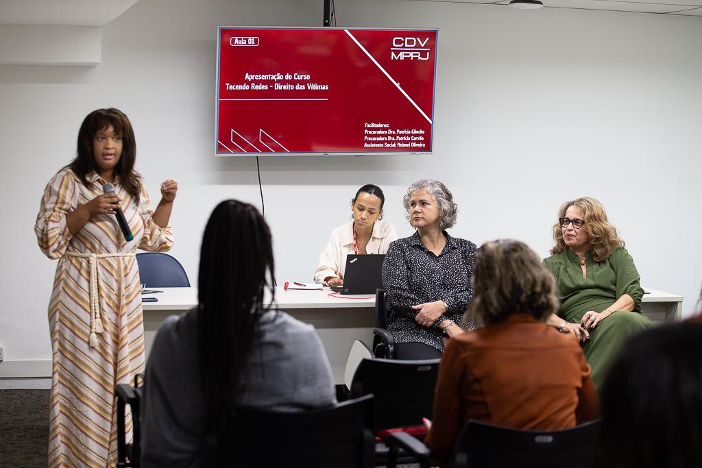 O Ministério Público do Estado do Rio de Janeiro, por meio da Coordenadoria de Promoção dos Direitos das Vítimas (CDV/MPRJ), deu início, nesta terça-feira (01/08), ao curso Tecendo Redes, sobre os Direitos das Vítimas. Esse é o primeiro curso específico sobre a temática, voltado para os profissionais que atuam na rede do Centro de Referência de Assistência Social (CREAS) do Município do Rio de Janeiro. O objetivo é formar um fluxo de atendimento às vítimas, com apoio da equipe multidisciplinar do Núcleo de Apoio às Vítimas (NAV/MPRJ). As próximas aulas serão realizadas nos dias 08/08 e 15/08, sempre das 13h às 17h30.