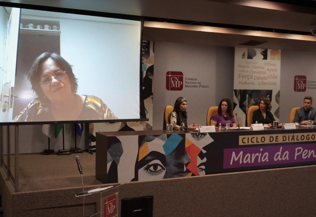 A coordenadora do Centro de Apoio Operacional das Promotorias de Justiça de Combate à Violência Doméstica e Familiar contra a Mulher (CAOVD/MPRJ), procuradora de Justiça Carla Araújo, participou, nesta quinta-feira (31/08), do Ciclo de Diálogos da Lei Maria da Penha, promovido pelo Conselho Nacional do Ministério Público (CNMP). O encontro aconteceu na sede do CNMP, em Brasília. Símbolo de resistência e luta, a ativista do direito das mulheres, Maria da Penha, participou da abertura do evento.