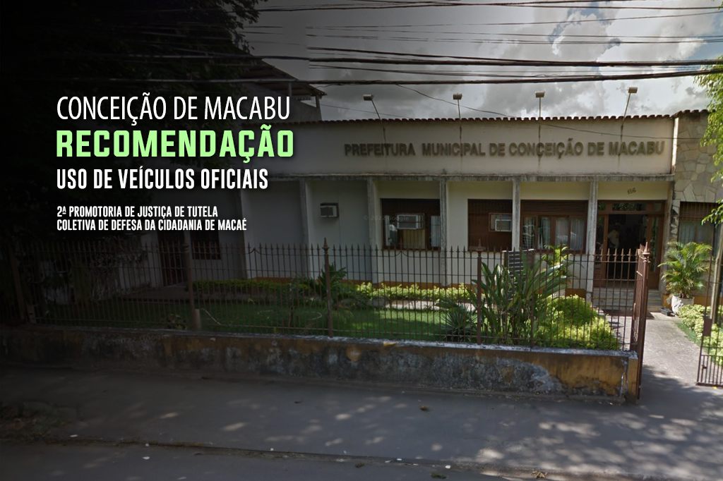 A 2ª Promotoria de Justiça de Tutela Coletiva de Macaé enviou à Prefeitura de Conceição de Macabu, nesta quarta-feira (11/10), Recomendação para que seja editado um ato geral normatizando o uso dos veículos do munícipio pelos servidores. O pedido também requer que os carros pernoitem apenas em garagens de tutela da prefeitura e sejam identificados com adesivos oficiais.