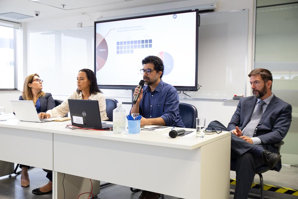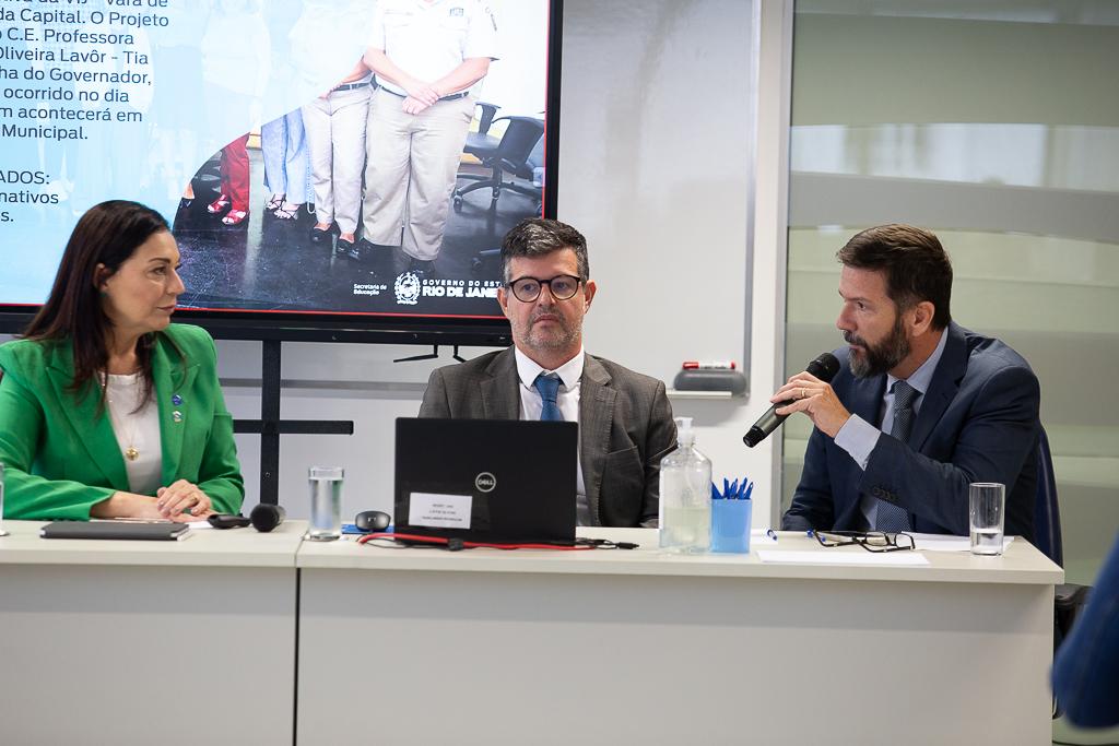 Como palestrantes estiveram presentes representantes da Secretaria de Estado de Educação do Rio de Janeiro (SEEDUC), a assessora Chefe da SEEDUC, Raquel Ventura Rodrigues de Queirós; a coordenadora de gestão intersetorial e frequência escolar, Bruna de Oliveira da Silva Antunes Gomes; e o superintendente de desenvolvimento de pessoas, Diogo Jorge Ferreira. Também participaram do painel o médico psiquiatra do GATE/ MPRJ, Dr. Leonardo Araújo de Souza; a auditora do Tribunal de Contas do Estado do Rio de Janeiro, cedida ao MPRJ, Karine Thomaz Veiga; e a promotora de Justiça Roberta Rosa Ribeiro, coordenadora de Mediação, Métodos Autocompositivos e Sistema Restaurativo (CEMEAR/MPRJ).