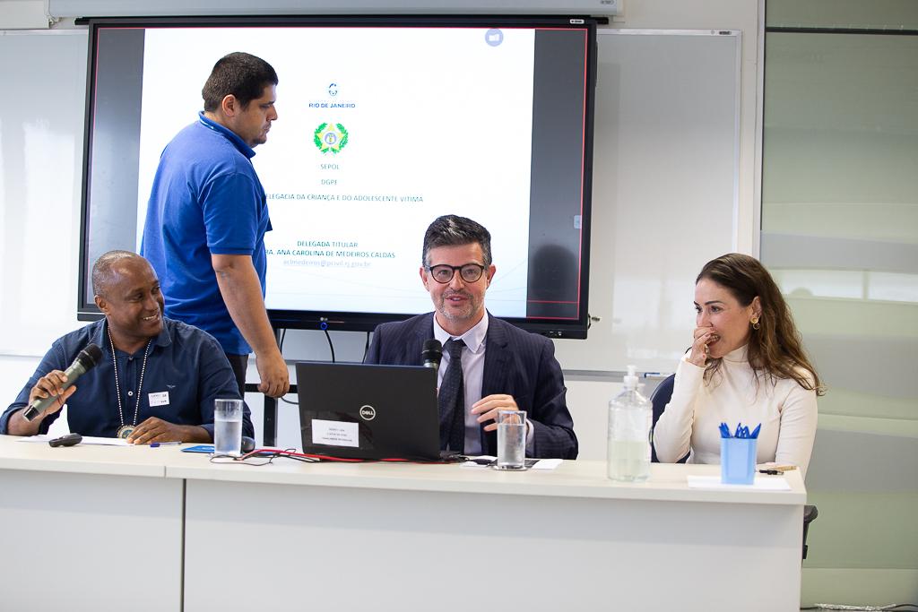 Esteve presente, ainda, o inspetor de polícia da Delegacia da Criança e do Adolescente Vítima (DCAV), Samuel Souza, que abordou os formatos de atuação da Polícia Civil no combate à violência escolar, bem como os métodos adotados na capacitação dos agentes. Já o perito computacional forense Franklin Soares dos Santos apresentou um panorama sobre a utilização de ferramentas tecnológicas alimentadas por informações provenientes de fontes públicas que auxiliaram na investigação de casos envolvendo violações de direitos humanos. "Pudemos ver o papel da cibernética no processo de análise e como ela auxiliou na tomada de decisões bem articuladas que auxiliariam no desenrolar das investigações", analisou.