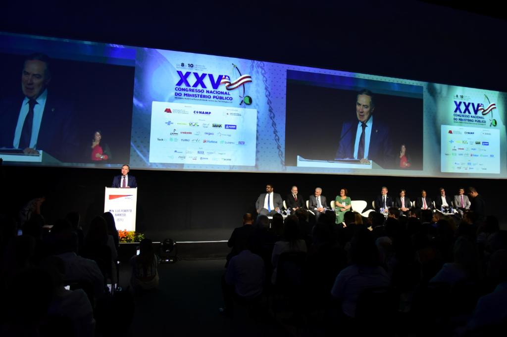 O Ministério Público do Estado do Rio de Janeiro (MPRJ) foi representado por uma delegação com diversos membros durante a XXV edição do Congresso Nacional do Ministério Público, que começou na última quarta-feira (08/11), no Centro de Convenções Salvador, e foi encerrado nesta sexta-feira (10/11) com palestra do presidente do Supremo Tribunal Federal, Luis Roberto Barroso. Procuradores e promotores de Justiça de diferentes áreas participaram do evento, que discutiu temas relacionados à atuação do Ministério Público, como o impacto das novas tecnologias, resolutividade e diversidade.