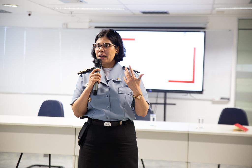 A primeira aula foi ministrada pela tenente-coronel da PM Claudia Moraes, que abordou um tema urgente: o patrulhamento e as garantias da Lei Maria da Penha. A palestra deu orientações sobre o atendimento a mulheres vítimas de violência, relatou boas práticas de atuação preventiva, detalhou os serviços especializados e não especializados no atendimento de mulheres em situação de violência doméstica, entre outros assuntos.