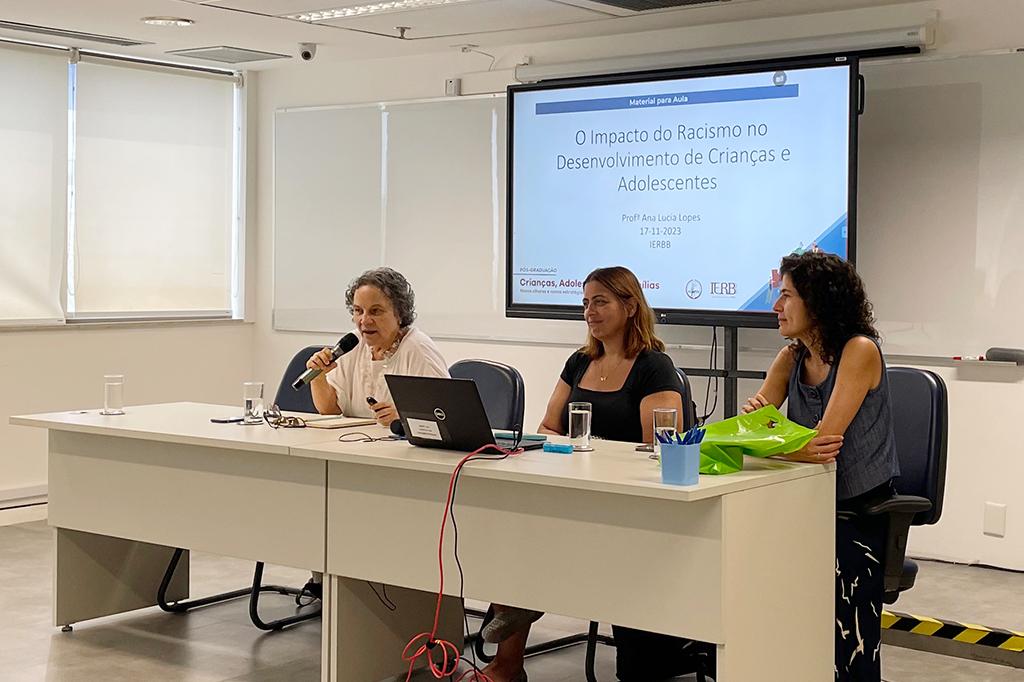 A aula foi ministrada pela doutora em Ciência Social, Ana Lucia Lopes, que falou sobre a diferenciação do preconceito racial, discriminação racial e do racismo, e aspectos históricos que ainda impactam a população negra. A aula foi iniciada com a apresentação de dois alunos da pós-graduação, a psicóloga Luana Galoni e o assistente social Douglas Campos, que explicaram suas pesquisas desenvolvidas com adolescentes negros na Baixada Fluminense.