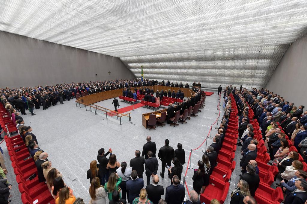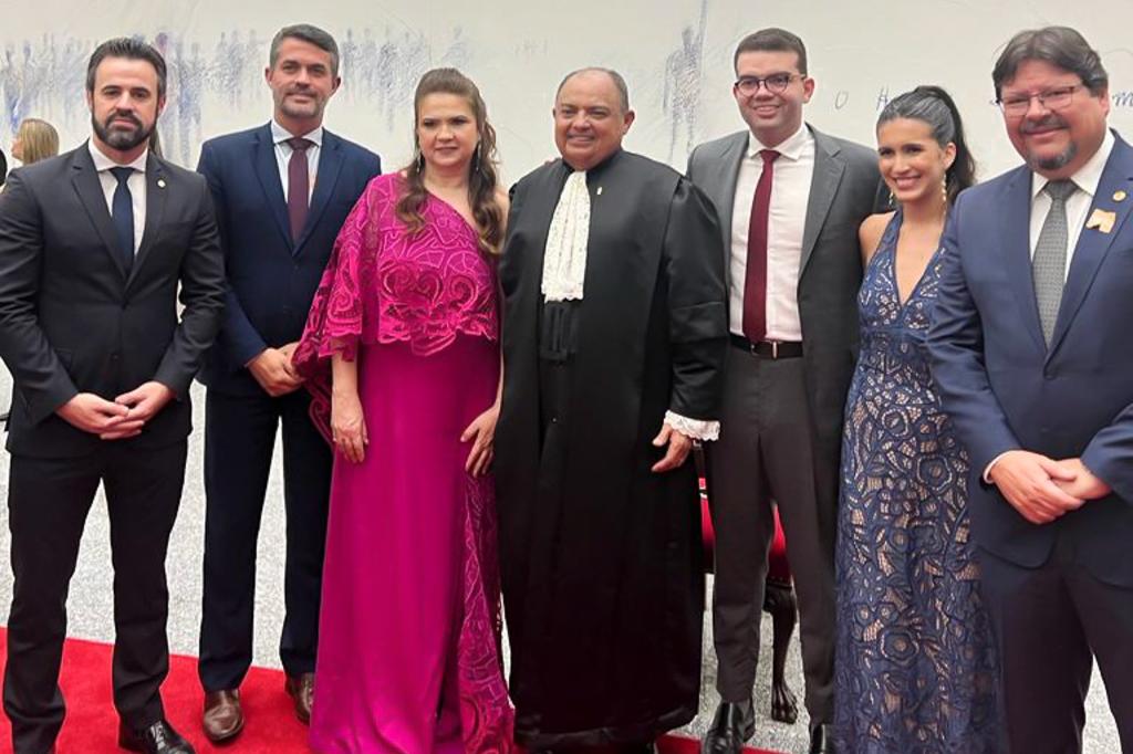 O procurador-geral de Justiça, Luciano Mattos, esteve presente, nesta quarta-feira (22/11), na sede do Superior Tribunal de Justiça (STJ), em Brasília, à cerimônia de posse dos três novos ministros da Corte, Teodoro Silva Santos, Afrânio Vilela e Daniela Teixeira. O evento, presidido pela presidente do STJ, ministra Maria Thereza de Assis Moura, contou, na mesa de abertura, com as presenças do vice-presidente da República, Geraldo Alckmin, do presidente do Supremo Tribunal Federal (STF), ministro Luís Roberto Barroso, da procuradora-geral da República interina, Elizeta de Paiva Ramos, do presidente da Câmara dos Deputados, Arthur Lira, e do presidente da Ordem dos Advogados do Brasil (OAB), Beto Simonetti.