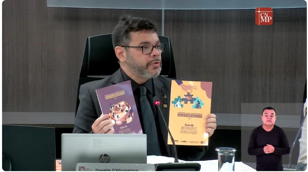O corregedor nacional, Oswaldo D'Albuquerque, apresentou o volume 2, Guia de Mediação e Conciliação; o volume 3, Guia de Práticas restaurativas e o volume 4, Guia de Legislação de Autocomposição, que foram entregues à presidente do CNMP, Elizeta de Paiva Ramos. Além dos guias apresentados hoje, já estão disponíveis para consulta o primeiro volume, Guia de Negociação, e o Manual de Resolutividade do Ministério Público, lançados no dia 25/09.