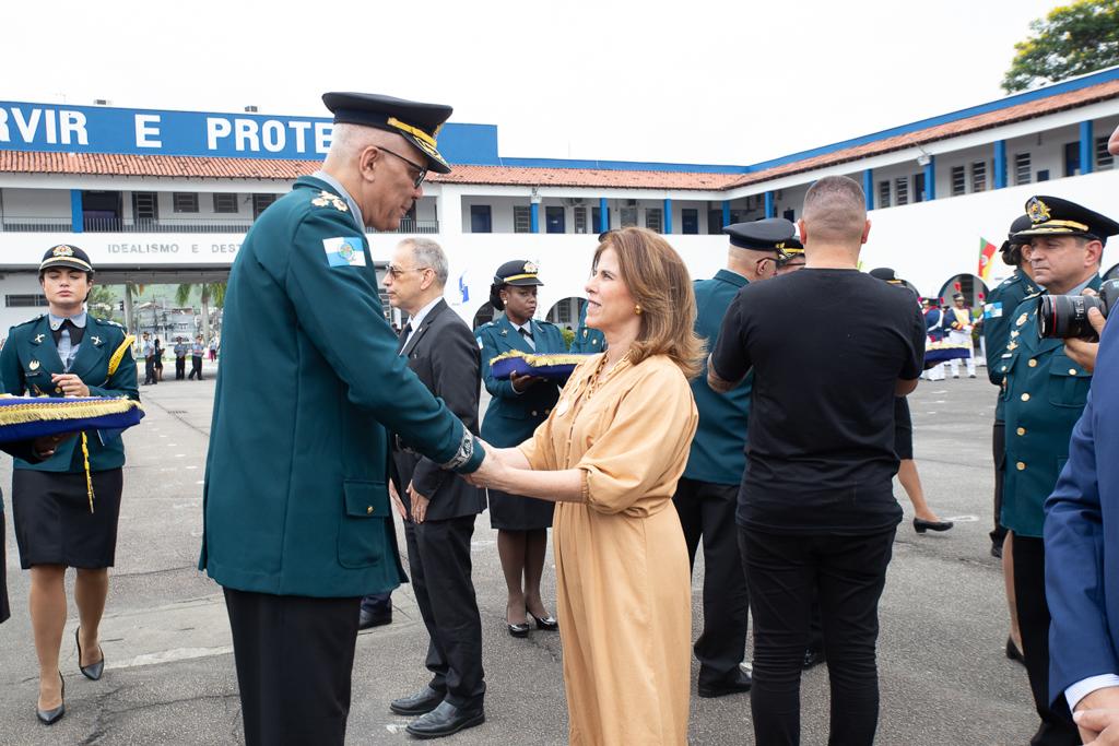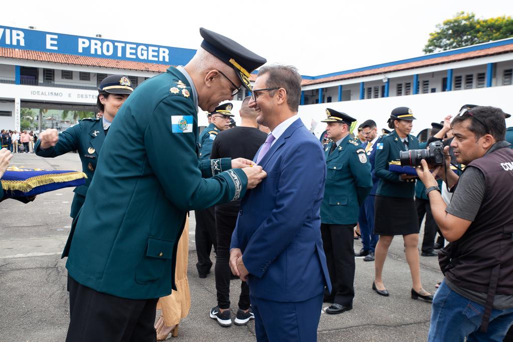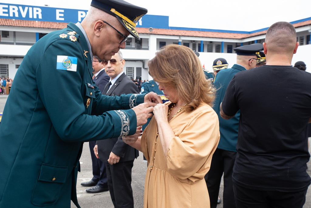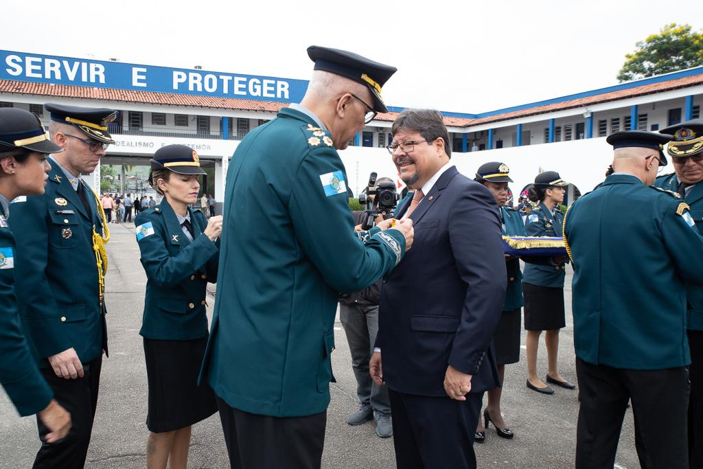 “É uma honra muito grande receber essa comenda. A Polícia Militar é muito respeitada, e o Ministério Público é parceiro dela, do fomento das políticas de segurança pública. Temos essa cooperação recíproca”, afirmou Glaucia Santana. “A Polícia Militar tem sido um grande parceiro do MPRJ, e em especial, da CSI. Isso só reforça a parceria e a importância que tem nas instituições andarem conjuntamente. É um prazer receber essa homenagem”, disse Eduardo Campos.