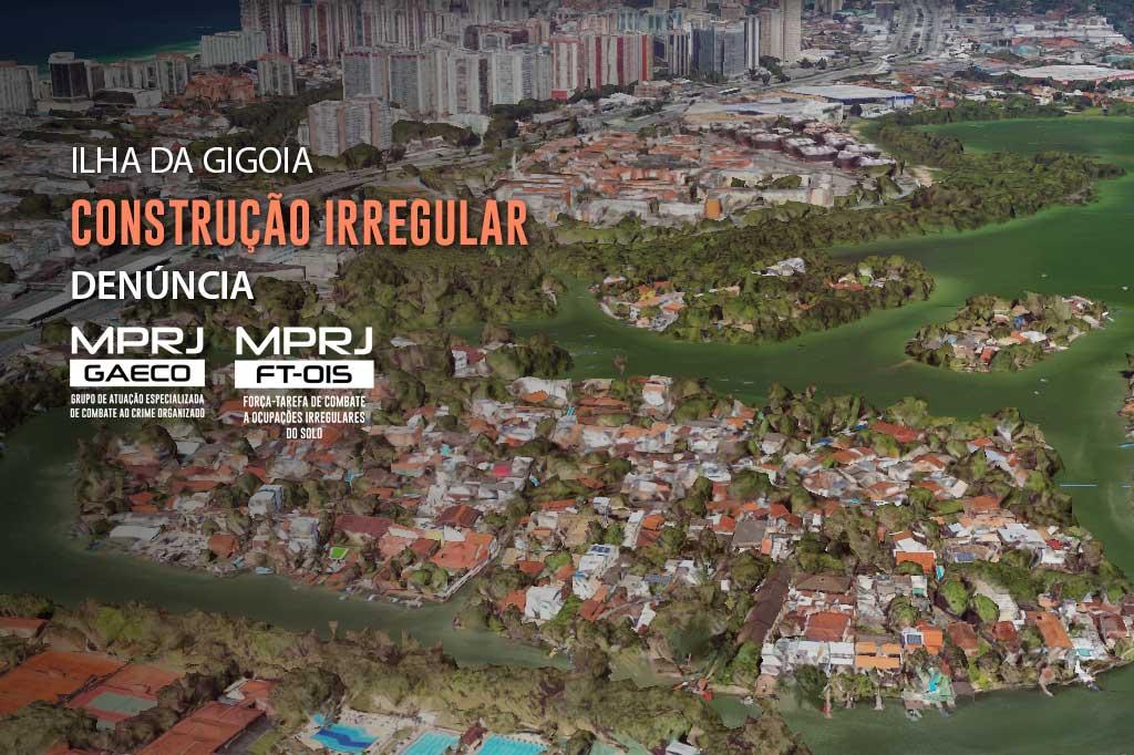 O Ministério Público do Estado do Rio de Janeiro (MPRJ), por meio da Força-Tarefa de Enfrentamento à Ocupação Irregular do Solo Urbano do Grupo de Atuação Especializada de Combate ao Crime Organizado (GAECO/FT-OIS), denunciou à Justiça um construtor e dois engenheiros civis pelos crimes de associação criminosa, desobediência de ordens administrativas e de ordem judicial, relativas a crimes contra o meio ambiente. Na ação penal, recebida pela 33ª Vara Criminal, no dia 07/02, o GAECO/FT-OIS obteve a manutenção da suspensão da construção e a demolição de um prédio, na Ilha da Gigoia, na Barra da Tijuca, que pertence ao construtor.