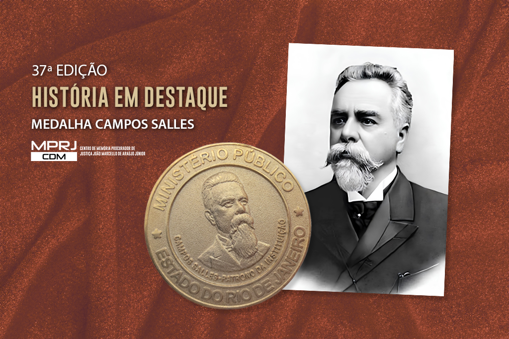 O Centro de Memória Procurador de Justiça João Marcello de Araújo Júnior do Ministério Público do Estado do Rio de Janeiro (CDM/MPRJ) apresenta, na 37ª edição do projeto História em Destaque, a Medalha Campos Salles. Instituída pela Resolução GPGJ nº 1.076, em 6 de novembro de 2002, pelo Procurador-Geral de Justiça José Muiños Piñeiro Filho, a medalha homenageia membros aposentados que detenham mais de 20 anos de exercício na carreira; que tenham completado 30 anos de serviços prestados à instituição; in memoriam aos que tenham falecido em atividade; que tenham pertencido aos quadros das unidades federativas anteriores à fusão; além de pessoas e autoridades estrangeiras ou nacionais que tenham contribuído para o engrandecimento do MPRJ. A entrega da medalha integra as celebrações do Dia Nacional do Ministério Público em 14 de dezembro.