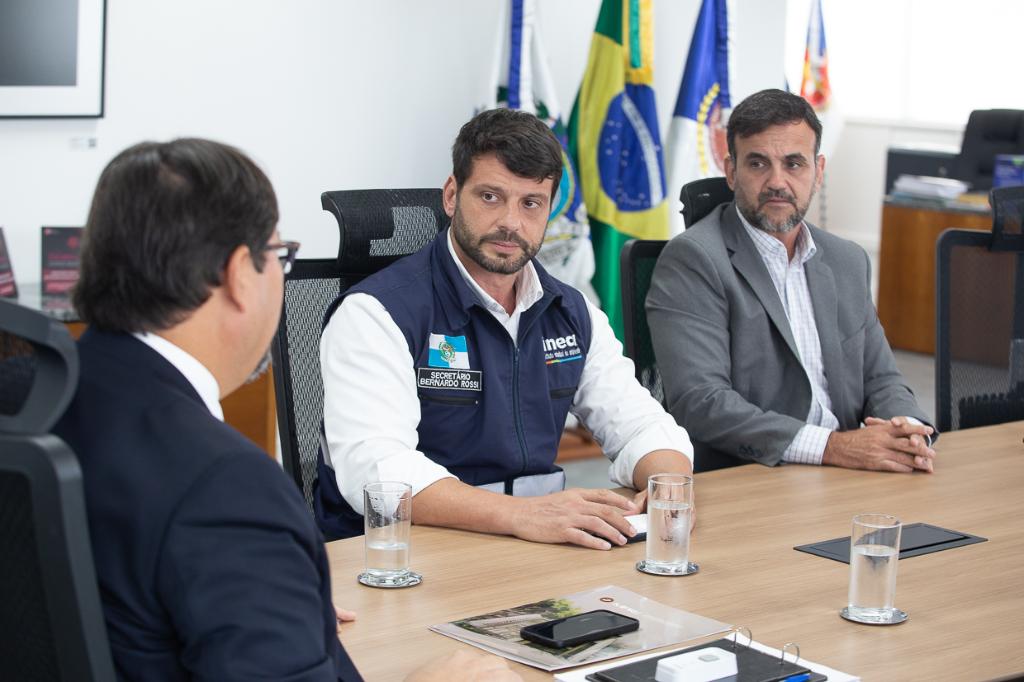 O procurador-geral de Justiça, Luciano Mattos, recebeu, nesta segunda-feira (08/04), o secretário de Meio Ambiente e Sustentabilidade do Estado, Bernardo Rossi, e o presidente do Instituto Estadual do Ambiente (INEA), Renato Jordão, para tratar sobre as medidas que estão sendo adotadas para descobrir a causa da poluição hídrica no manancial de captação de água do Sistema Imunana-Laranjal e os responsáveis pelo vazamento do poluente conhecido como tolueno. Esse incidente foi responsável pela suspensão temporária da captação de água, impactando diretamente o fornecimento para aproximadamente 2 milhões de habitantes da região metropolitana do Rio.