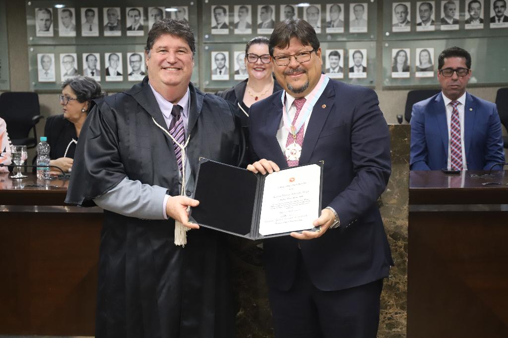 “A Constituição atribui poderes a órgãos públicos que são responsáveis por zelar pelos valores estruturantes desse território, cujas demandas dos seus habitantes se agigantam pela sua pluralidade. Ao STF compete a guarda da Constituição e, portanto, gostaria de destacar a importância e a relevância histórica desse dia para o MPES, em que o ministro Luiz Fux está sendo agraciado com a Medalha do Mérito do MPES e, na pessoa de quem, parabenizo todos os agraciados, homens e mulheres que lutam por altos ideais”, afirmou a procuradora-geral de Justiça do MPES, Luciana Andrade, que presidiu a mesa da cerimônia.