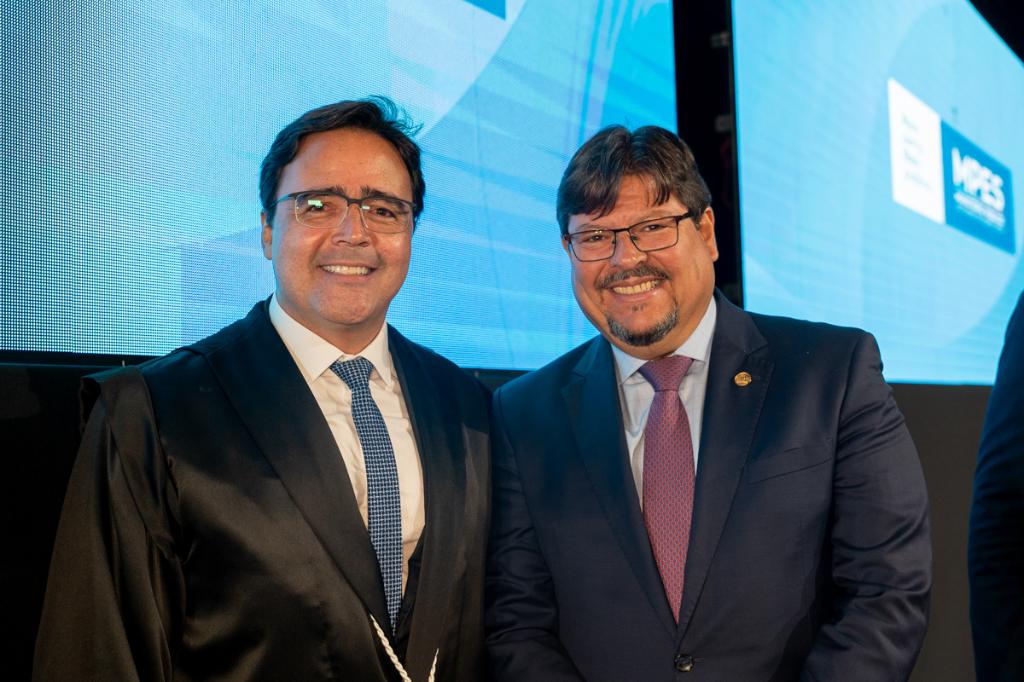 O procurador-geral de Justiça, Luciano Mattos, participou, nesta quinta-feira (02/05), na capital capixaba (Vitória), da cerimônia de posse do novo PGJ do Estado do Espírito Santo, Francisco Martínez Berdeal, para o biênio 2024/2026. O cargo foi transmitido a Francisco por Luciana Andrade. Luciano Mattos, que é vice-presidente para a Região Sudeste do Conselho Nacional dos Procuradores-Gerais de Justiça dos Ministérios Públicos dos Estados e da União (CNPG), representou o presidente do CNPG, César Mattar Jr., na mesa de abertura da cerimônia de posse.