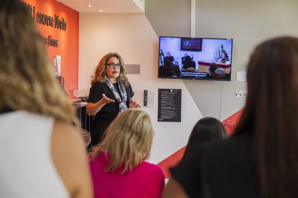 O circuito iniciou na Ouvidoria do MPRJ, no subsolo, passando pela exposição “Do chão ao coração: Mulheres Terra" no Corredor Cultural do MPRJ, uma mostra que reúne obras da artista plástica Bianca Branco, inspirada em suas memórias no interior da Bahia, com destaque às mulheres fortes de sua família. Em seguida, foram para o Corredor Cultural Promotor de Justiça Stênio Lutgardes Neves, no 4º andar do Prédio das Procuradorias de Justiça, onde a historiadora do CDM/MPRJ, Nayara Cristina dos Santos, explanou sobre a história, a atuação do MPRJ e a importância da instituição na sociedade.