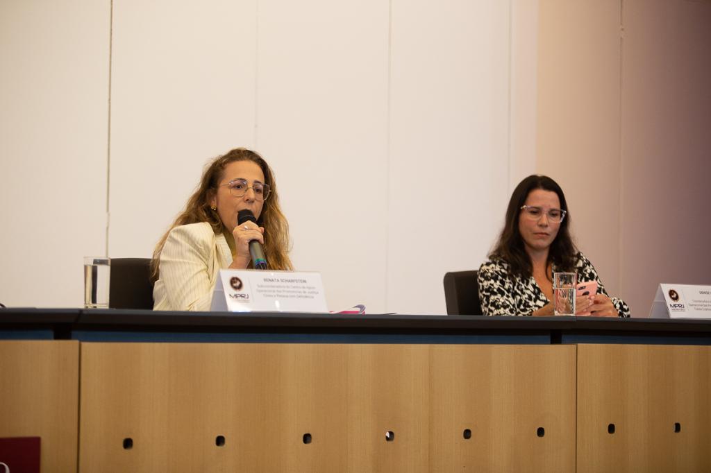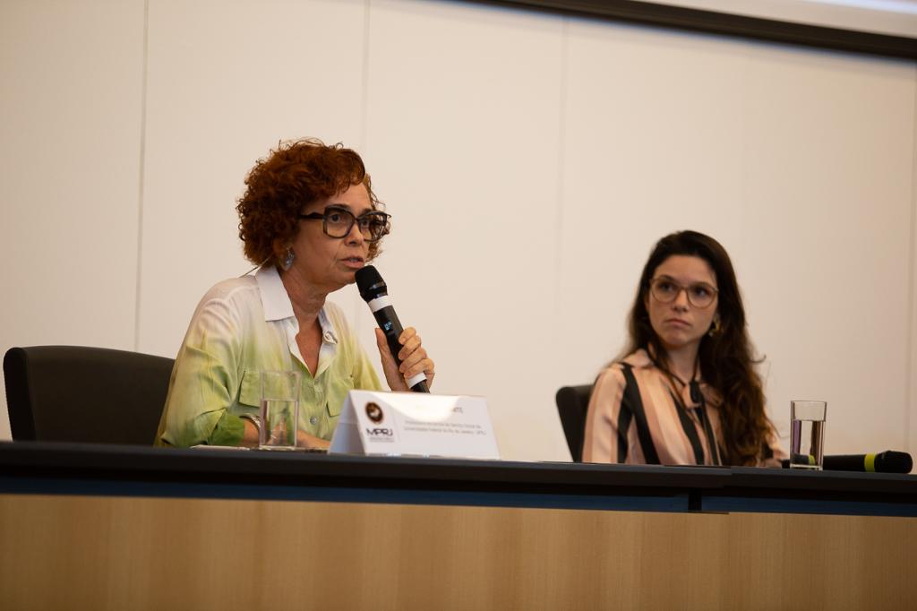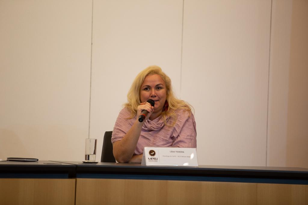Compôs a mesa, também, a médica psiquiatra do NATEM/MPRJ, Magaly Nöel, que intermediou os debates, trazendo sua experiência na RAPS do Município de São Paulo no tratamento de usuários da Cracolândia. Por fim, Lídia Marins Teixeira, psicóloga do Centro de Atenção Psicossocial AD Miriam Makeba, compartilhou sua experiência profissional com usuários do serviço, esclarecendo sobre a Política de Redução de Danos.
