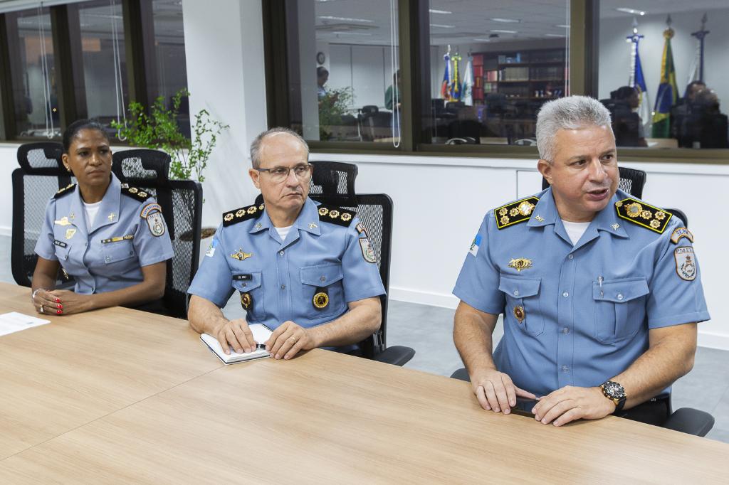 Em reunião realizada nesta quinta-feira (16/05), na sede do MPRJ, da qual participaram o procurador-geral de Justiça, Luciano Mattos; a ouvidora nacional do Conselho Nacional do Ministério Público (CNMP), Ivana Cei; o membro auxiliar da Ouvidoria Nacional, Oswaldo D’Albuquerque Lima Neto, o secretário de Polícia Militar do Estado do Rio de Janeiro, cel. PM Marcelo Menezes Nogueira, e o secretário de Polícia Civil do Estado, delegado Marcus Amin, ficou acertada uma visita nesta sexta-feira (17/05), às 11h, ao Centro Integrado de Comando e Controle (CICC). Na ocasião, representantes do MPRJ e da Ouvidoria Nacional do Ministério Público (CNMP) poderão conhecer a Ouvidoria-Geral da Polícia Militar do Estado do Rio de Janeiro e vistoriar o sistema das câmeras corporais dos policiais.