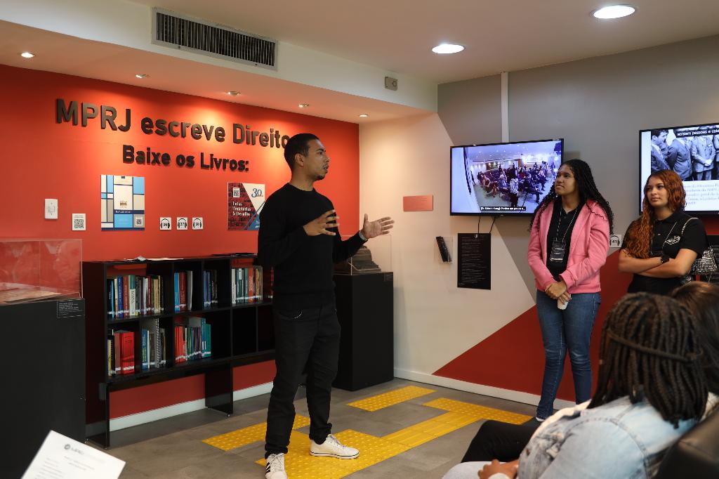 Os estudantes foram recebidos pelo coordenador do Centro de Memória, procurador de Justiça Márcio Klang, pela historiadora do CDM/MPRJ, Nayara Cristina, e pelo estagiário de história, Lucas Pinheiro. Durante a visita à exposição, eles puderam conhecer a história do MP no Estado do Rio de Janeiro e aprender sobre a função do órgão na democracia brasileira.