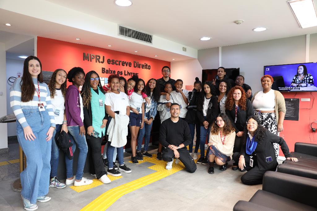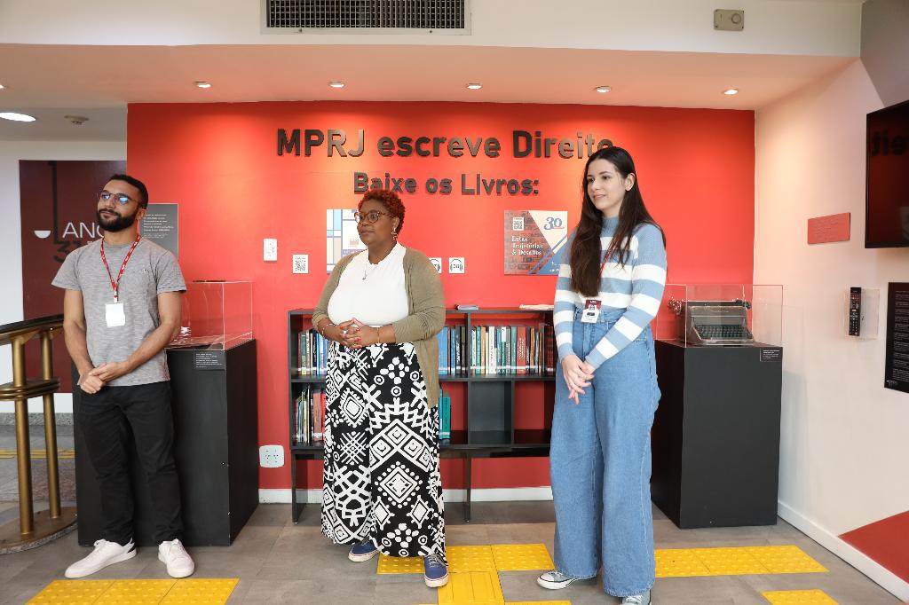 O Ministério Público do Estado do Rio de Janeiro (MPRJ), por meio do Centro de Memória Procurador de Justiça João Marcello de Araújo Júnior (CDM/MPRJ), recebeu alunos da Escola Municipal Emílio Carlos, de Guadalupe, nesta terça-feira (09/07), para uma visita guiada na exposição "131 anos do Ministério Público no Rio de Janeiro". O grupo foi recebido pela historiadora Nayara Cristina, do CDM/MPRJ, e pelos estagiários de História Lucas Pinheiro e Beatriz Oliveira. Os mediadores explicaram como o MPRJ atua na garantia dos direitos da população e como é feito o contato com a instituição. Além disso, conduziram uma atividade sobre a atuação dos poderes políticos brasileiros, destacando as funções de vereadores, prefeitos, governadores e do presidente da República.