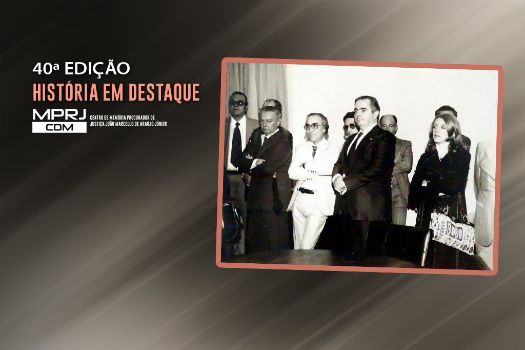 Na fotografia utilizada na edição, foram identificados, da esquerda para a direita: Francisco Massá Filho (quarto, na fileira a frente), Maria Christina Pasquinelli Bacha de Almeida (quinta, a frente) e o Ulysses Leocádio, de terno branco (terceiro, a frente). Caso reconheça outro integrante da foto, entre em contato com o CDM/MPRJ e ajude no resgate da memória de nossa instituição. (memoria@mprj.mp.br)