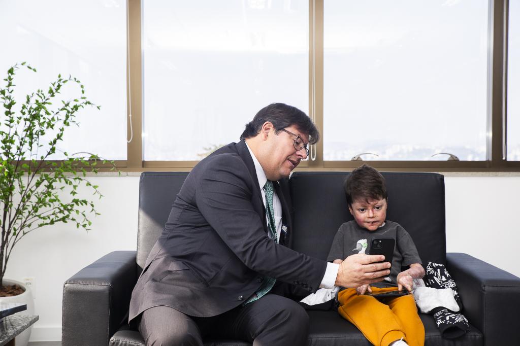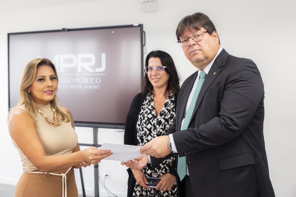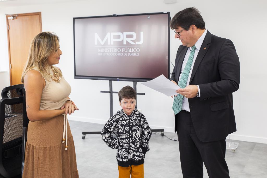 A reunião contou com a presença do pequeno Gui, da coordenadora do CAO Saúde/MPRJ, promotora de Justiça Denise Vidal, e do chefe de gabinete em exercício, Átila Pereira de Souza.