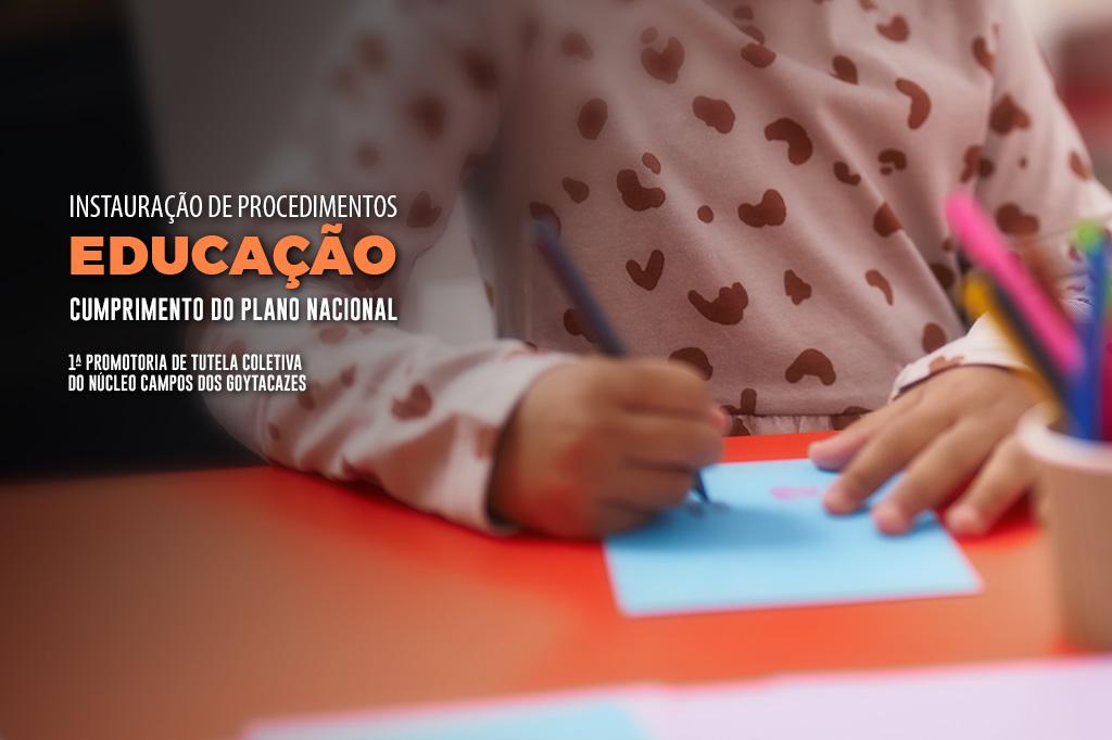 O Ministério Público do Estado do Rio de Janeiro (MPRJ), por meio da 1ª Promotoria de Tutela Coletiva do Núcleo Campos dos Goytacazes, instaurou, em 22/07, procedimentos administrativos tendentes a apurar o efetivo cumprimento, por parte dos municípios de Campos dos Goytacazes, São Fidélis, São João da Barra e São Francisco de Itabapoana, da Meta 1 do Plano Nacional de Educação (PNE), especificamente no que tange à garantia de acesso universal e gratuito para crianças de quatro a cinco anos de idade, bem como a oferta de vagas suficientes para atender, no mínimo, 50% das crianças de até 03 três anos de idade.