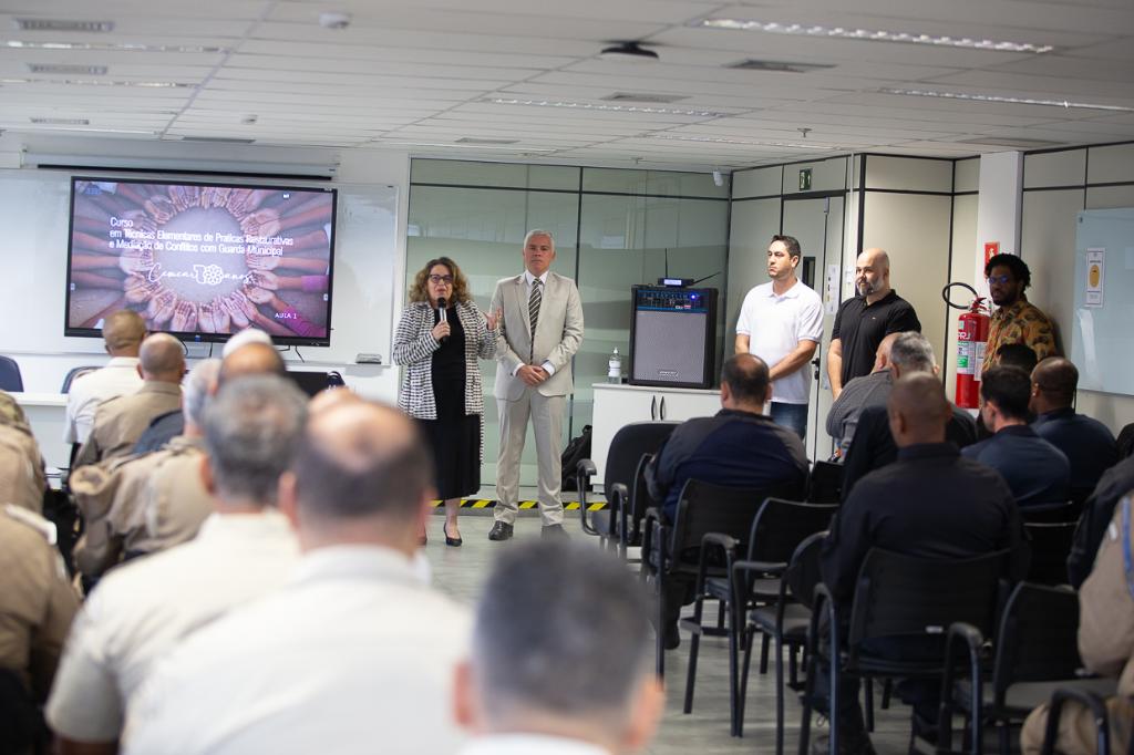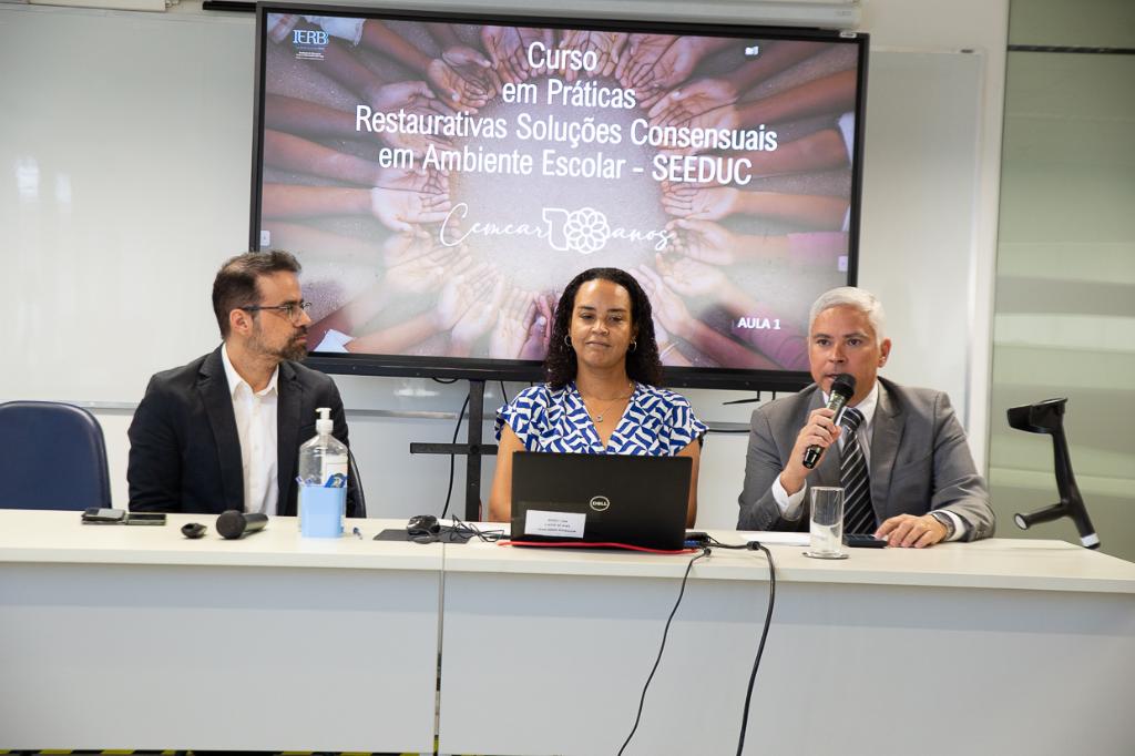 Compuseram a mesa de abertura, além da titular da 1ª Promotoria de Justiça Junto ao II Tribunal do Júri da Capital, Simone Sibílio, o coordenador e a subcoordenadora do Centro de Apoio Operacional das Promotorias de Justiça Criminais (CAO Criminal/MPRJ), Átila Pereira de Souza, que representou o procurador-geral de Justiça, Luciano Mattos, e Anna Gabriella Ribeiro de Carvalho Gama Taunay, além do vice-diretor do IERBB, promotor de Justiça Alexandre Joppert. A mediação do curso foi feita pela titular da 1ª Promotoria de Justiça Criminal de Queimados, Ana Paula Lopes Perdigão de Amorim Moura.