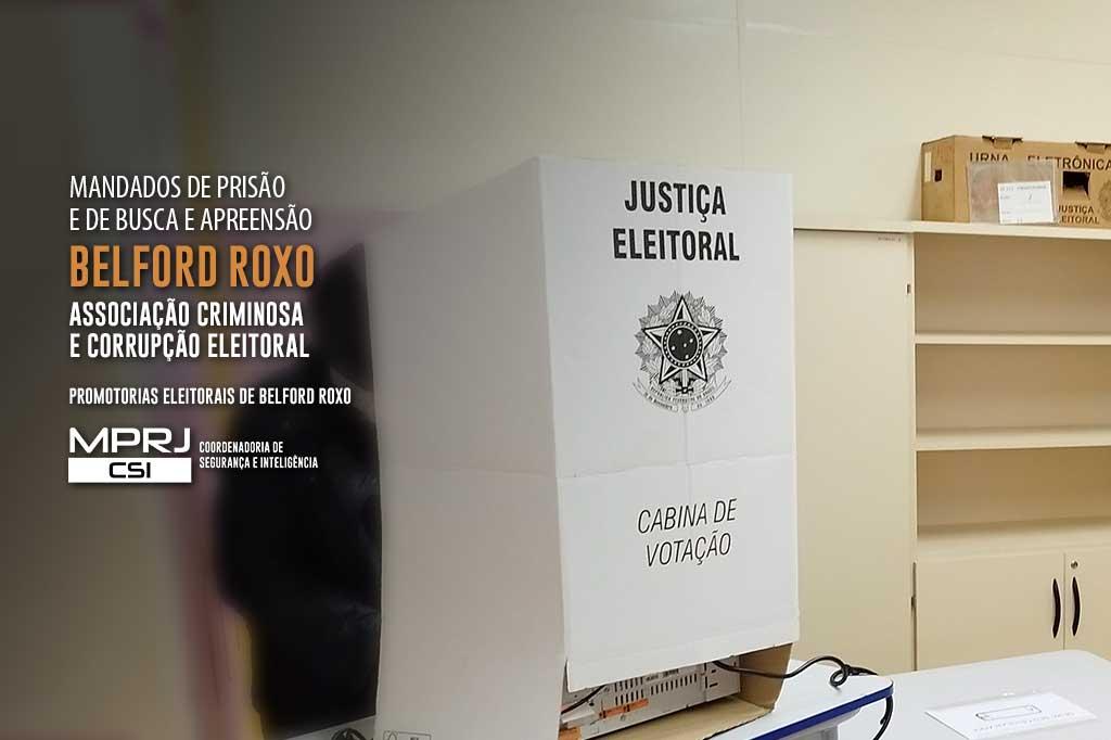 O Ministério Público do Estado do Rio de Janeiro (MPRJ), por meio das Promotorias Eleitorais de Belford Roxo, com o auxílio da Coordenadoria de Segurança e Inteligência (CSI), cumpre, nesta sexta (23/08), dois mandados de prisão e três de busca e apreensão contra o candidato a vereador do município de Belford Roxo, Sergio Accioly dos Santos (vulgo "Dinho Resenha") e o policial militar do 39º Batalhão da Polícia Militar, Michel Maia Rodrigues. Ambos foram denunciados, juntamente com Vanessa Rodrigues de Souza e Amanda Teixeira da Silveira, por se associarem para comprar votos de diversos eleitores nas eleições municipais de 2020, em favor de "Dinho".