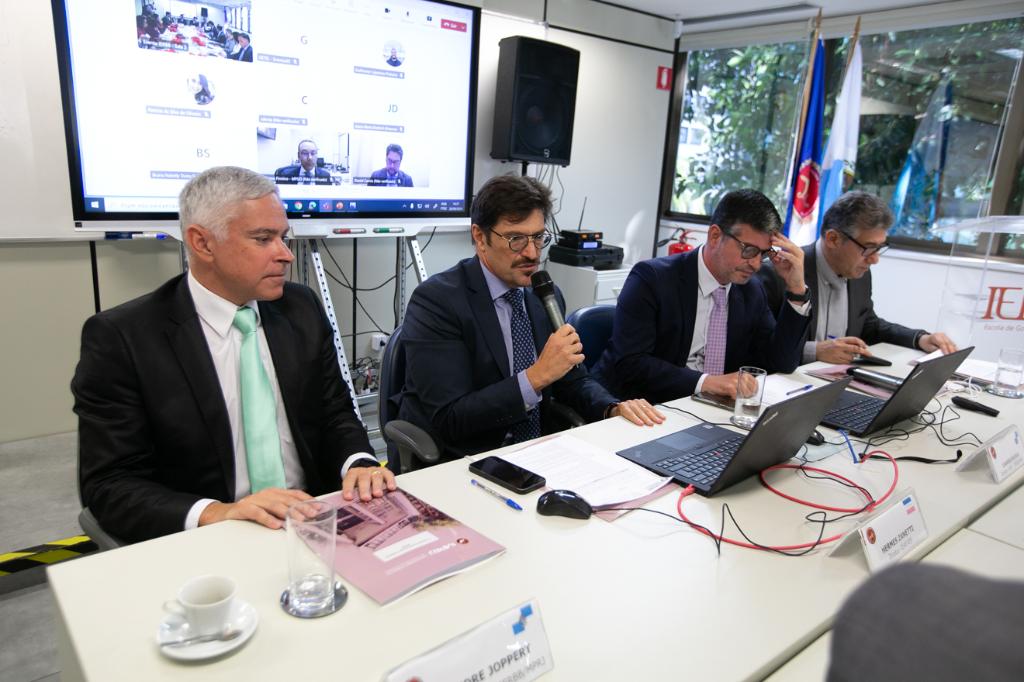 Além de Leandro Navega, compuseram a mesa de abertura da Terceira Reunião Ordinária do CDEMP o assessor-chefe da Assessoria de Recursos Constitucionais Cíveis (ARC-CÍVEL/MPRJ), Sávio Bittencourt, o vice-diretor do IERBB/MPRJ, Alexandre Joppert, e o presidente do CDEMP, Hermes Zaneti Junior.