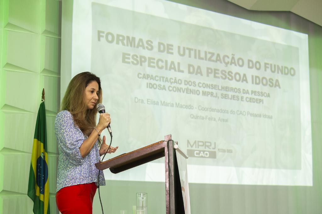 A promotora de Justiça Elisa Maria Macedo, coordenadora do CAO Pessoa Idosa/MPRJ, abriu o evento com uma palestra sobre as formas de utilização do Fundo Especial da Pessoa Idosa. Entre os temas, as formas de criação, cadastramento e utilização dos recursos dos fundos, a elaboração dos planos de aplicação e leis orçamentárias. As palestras foram realizadas durante toda a tarde e, ao final, aconteceram as oficinas sobre como elaborar um plano de ação e como criar um projeto. Na plateia estavam conselheiros da capital, Baixada Fluminense e de municípios da Costa Verde e Região Serrana.