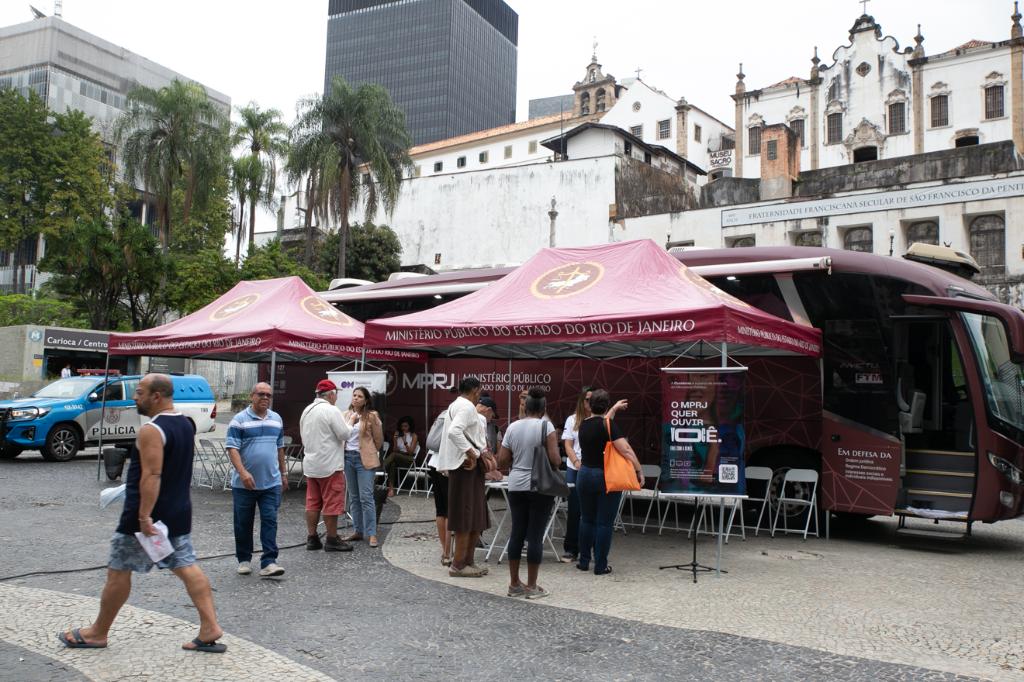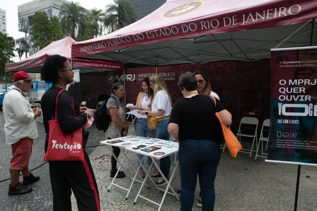 O Ministério Público do Estado do Rio de Janeiro (MPRJ) levou, nesta terça-feira (03/09), a sua Ouvidoria Itinerante ao Largo da Carioca, no Centro do Rio. As tendas e o ônibus da Ouvidoria ficaram disponíveis das 9h às 13h para que a população pudesse registrar denúncias, realizar reclamações e obter informações sobre diversos assuntos. Ao final do dia, foram fornecidas 108 orientações e registradas 11 comunicações.