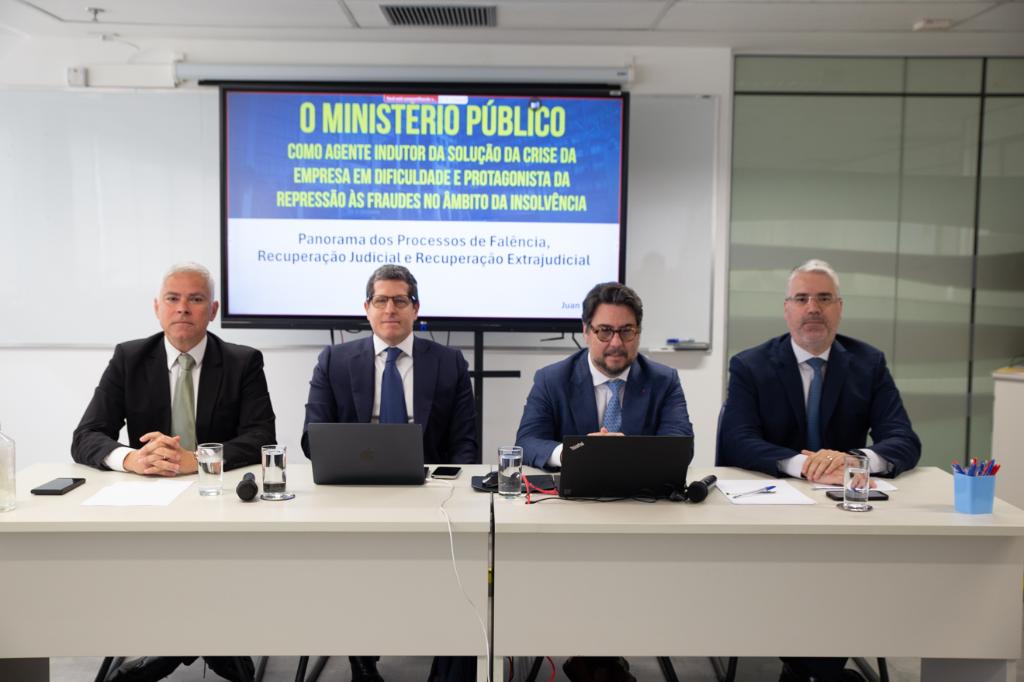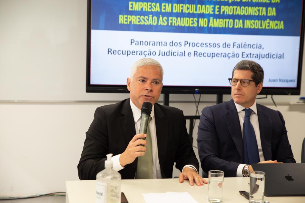 “Quero agradecer enormemente a presença de duas figuras lendárias do Direito Empresarial brasileiro: o Dr. Daniel Cárnio, que elevou a discussão sobre a atuação do Ministério Público na área empresarial, e o Dr. Márcio Guimarães, que, mesmo fora da instituição, continua colaborando imensamente conosco. Ambos contribuíram significativamente para o nosso trabalho e para o avanço do Direito Empresarial", afirmou Luciano Mattos.