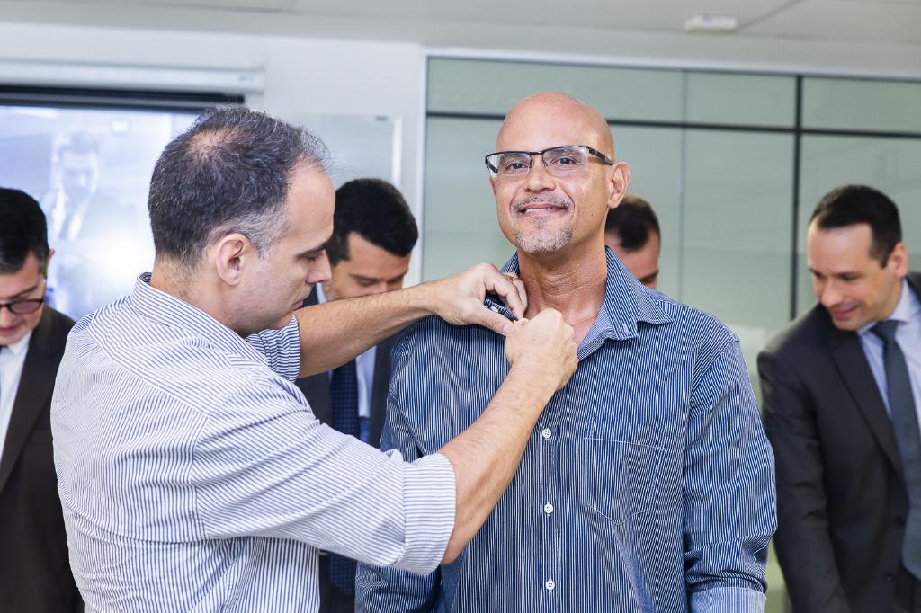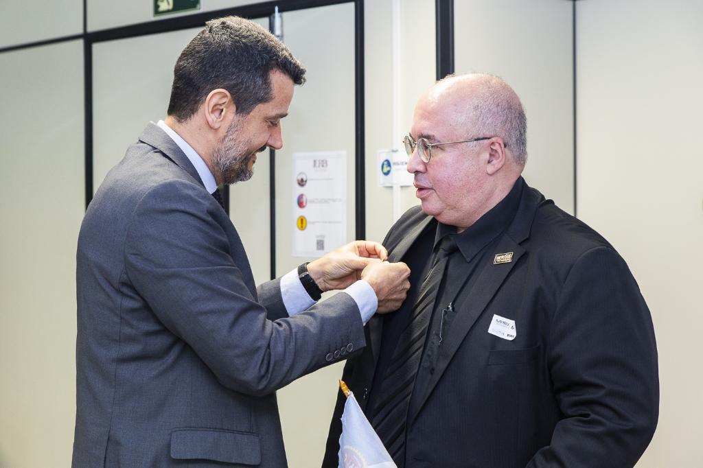 Ao final da celebração, os concluintes foram chamados à mesa e receberam Insígnias como forma de simbologia e dever de responsabilidade ao Ministério Público. Na cerimônia também foi feita uma homenagem ao Coronel Romeu Antonio Ferreira, um dos grandes nomes da inteligência no Brasil, que foi professor e muito contribuiu na estruturação do curso.
