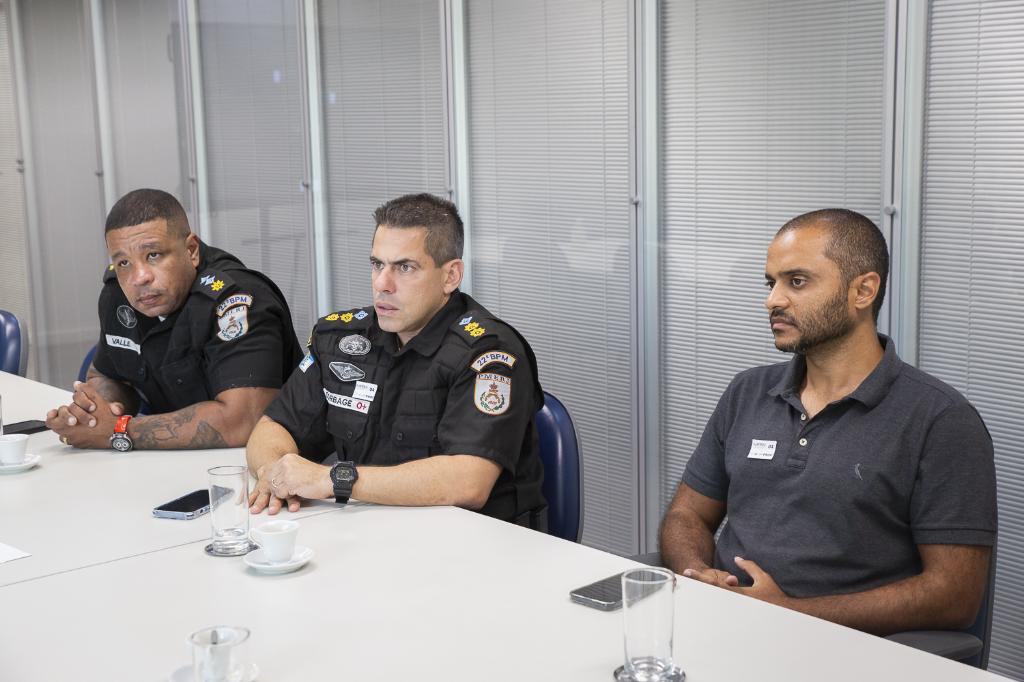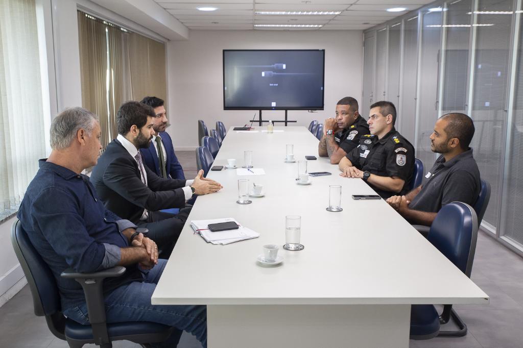 Além dos promotores de Justiça, participaram do encontro, pelo MPRJ, o assessor da Coordenadoria-Geral de Segurança Pública (COGESP/MPRJ), Gilson Chagas, e, pela PM, o Tenente-Coronel Marcelo Corbage, o Major Felipe do Valle e o capitão Caio Lage.