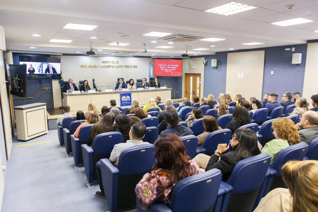 A abertura do encontro foi feita pelo diretor-geral da EMERJ, o desembargador Marco Aurélio Bezerra de Melo e, posteriormente, o diretor de Diretoria de Regulação da Educação Superior (SERES/MEC), Daniel Ximenes, e a conselheira do Conselho Estadual de Educação do Rio de Janeiro, Giane Quinze Dias de Faro, apresentaram a importância dos atos regulatórios para implementação das escolas de governo.