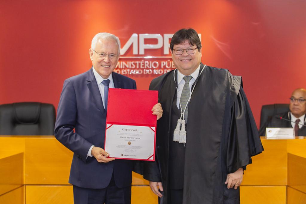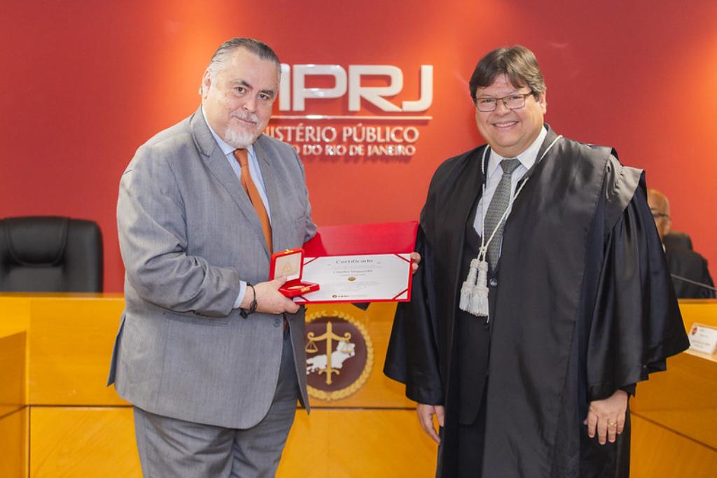 O procurador-geral de Justiça, Luciano Mattos, presidiu a sessão e entregou as medalhas aos homenageados. “O ex-presidente Manoel Ferraz de Campos Sales foi um grande incentivador do papel do Ministério Público e, quando ocupou o cargo de ministro da Justiça, criou a Procuradoria de Justiça Federal, embrião do que hoje é o MP brasileiro. Isso demonstra a importância da homenagem prestada pelo MPRJ. Para completar, o idealizador da resolução que criou a Medalha, o desembargador do Tribunal de Justiça do Estado do Rio de Janeiro e ex-PGJ José Muiños Piñeiro Filho, está presente aqui conosco hoje, conferindo ainda mais importância à cerimônia”, destacou o PGJ.