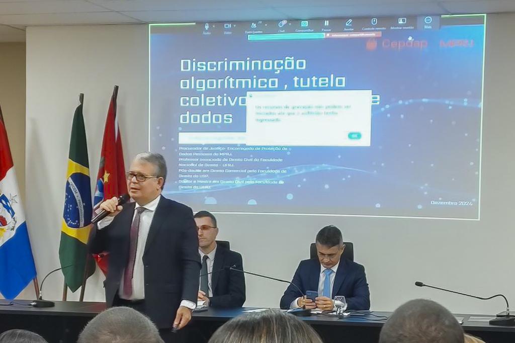 O evento contou com palestras de Daniela Cravo, sobre o papel do Ministério Público na adequação dos municípios à proteção de dados pessoais; Izaac Alencar, sobre “Proteção de dados pessoais na era da Inteligência Artificial”; e João Santa Terra, que abordou a proteção de dados na produção de conhecimento e atividades persecutórias do Ministério Público.