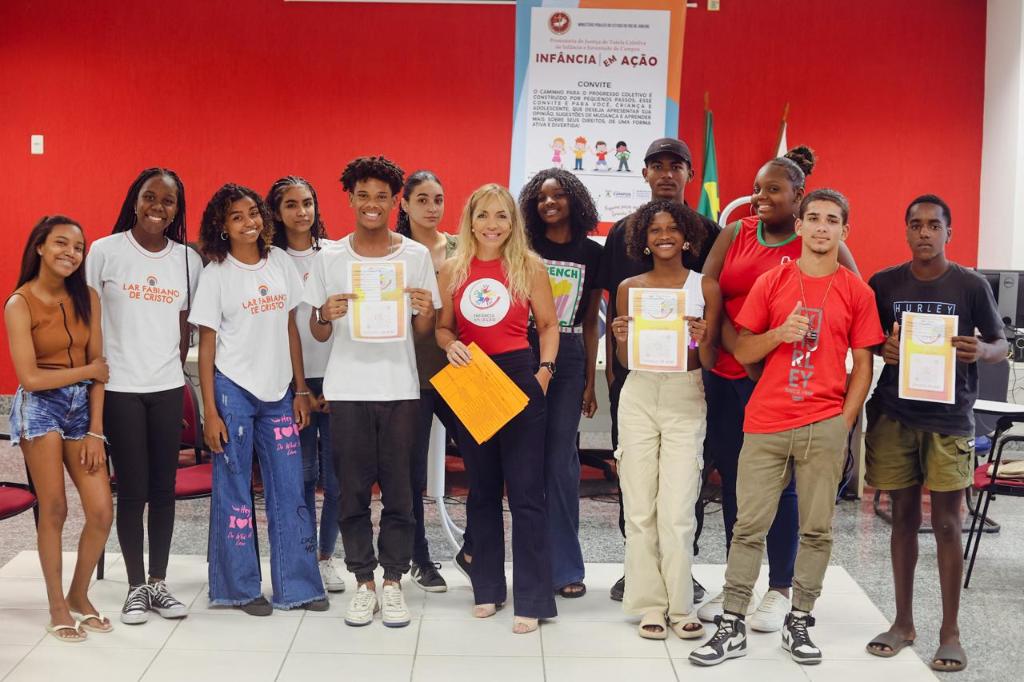 O Ministério Público do Estado do Rio de Janeiro (MPRJ), por meio da Promotoria de Tutela Coletiva da Infância e Juventude de Campos dos Goytacazes, concluiu, na tarde de quinta-feira (12/12), mais uma etapa do segundo módulo do Projeto Infância em Ação, que busca mapear necessidades de políticas públicas dirigidas à população infantojuvenil, em especial residente em áreas carentes, sob a perspectiva das próprias crianças e adolescentes. O evento ocorreu no auditório do CRAAI Campos e envolveu a participação de grupos de adolescentes representantes de diferentes regiões do município, atendidas pelas Organizações da Sociedade Civil (OSCs) Bem Faz Bem, Lar Fabiano de Cristo e Centro Juvenil Salesiano.