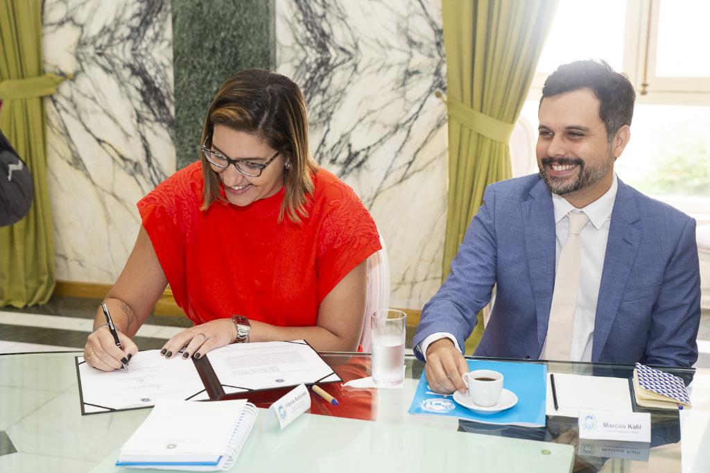 Participaram da cerimônia de assinatura do convênio as promotoras de Justiça Adriana Lucas e Raquel Madruga; a diretora-geral de Polícia da Capital, delegada Raissa Maria dos Santos Celles; o oficial de Proteção do UNICEF, Marcos Kalil; o subsecretário de Relações Internacionais. Bruno Costa; e o subsecretário de Estado de Desenvolvimento Social e Direitos Humanos, Anderson Coelho.