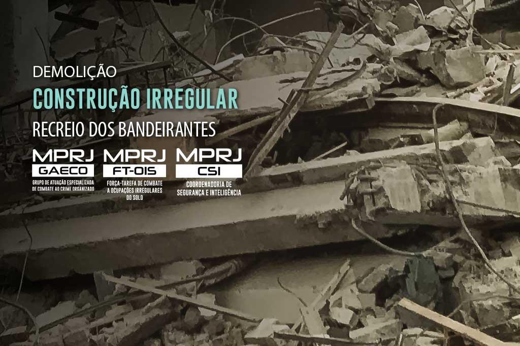 O Ministério Público do Estado do Rio de Janeiro (MPRJ), por meio da Força-Tarefa de Enfrentamento à Ocupação Irregular do Solo Urbano, do Grupo de Atuação Especializada de Combate ao Crime Organizado (GAECO/FT-OIS), ajuizou uma ação civil pública contra o Município do Rio de Janeiro, o Instituto Estadual do Ambiente (INEA), o Condomínio Nova Itanhangá, a Iguá Rio de Janeiro e quatro pessoas físicas. Na ação, a Força-Tarefa requer a interrupção das intervenções ilegais realizadas no Condomínio Nova Itanhangá, localizado na Avenida Engenheiro de Souza Filho, nº 613, na Zona Oeste do Rio.